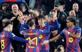 欧冠1/8决赛次回合的较量在巴塞罗那主场...